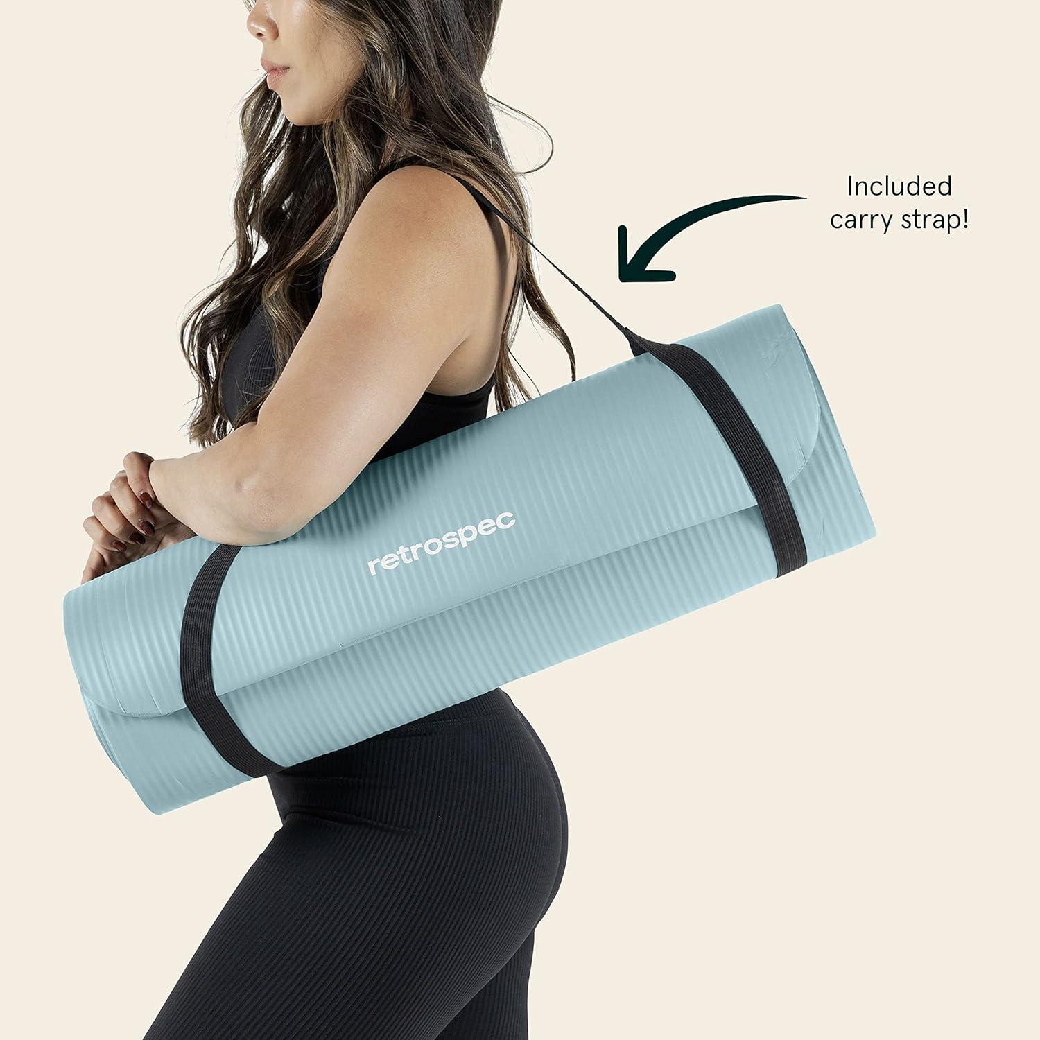 imageRetrospec Solana Yoga Mat 12quot Thick wNylon Strap for Men ampamp Women  Non Slip Exercise Mat for Yoga Pilates Stretching Floor ampamp Fitness WorkoutsBlack