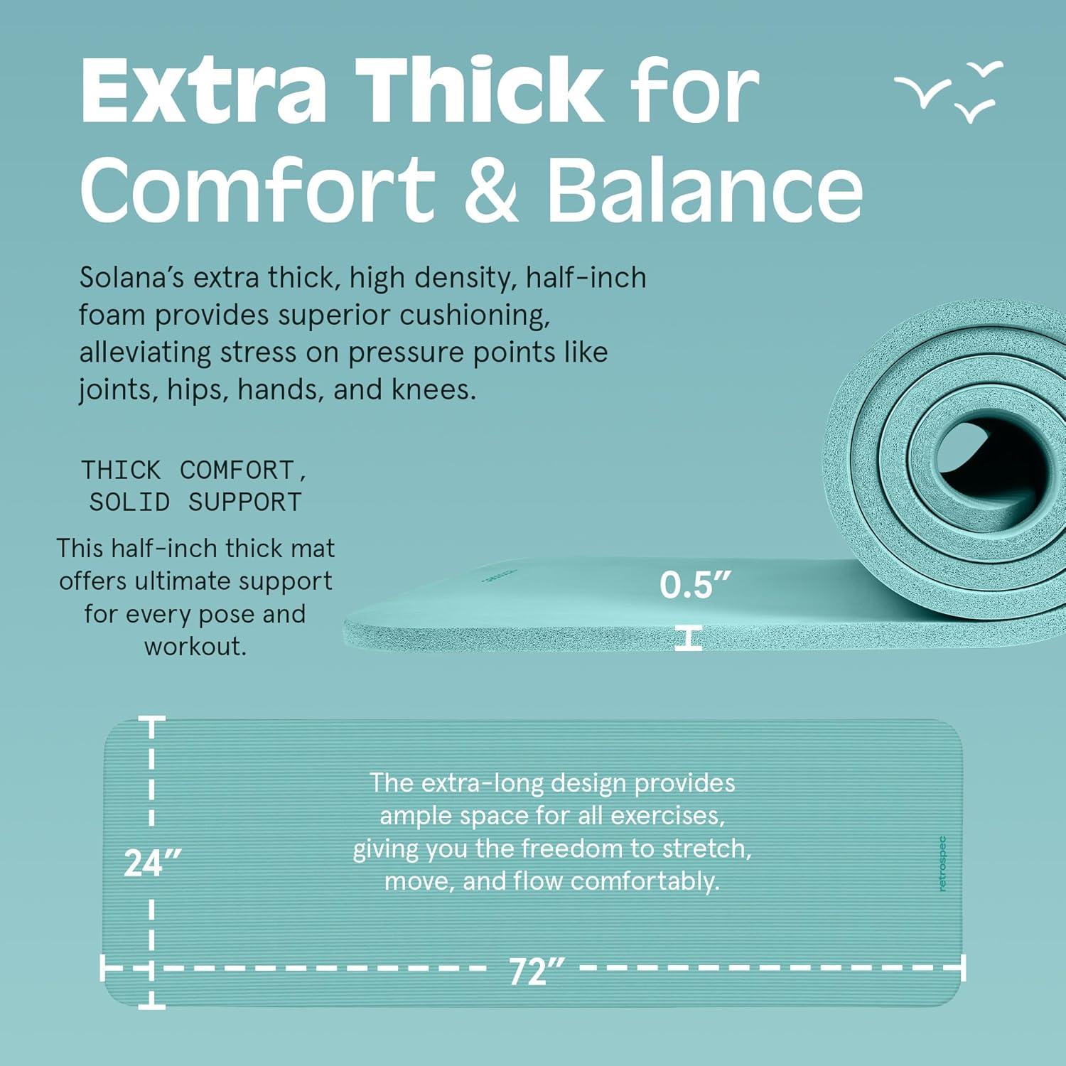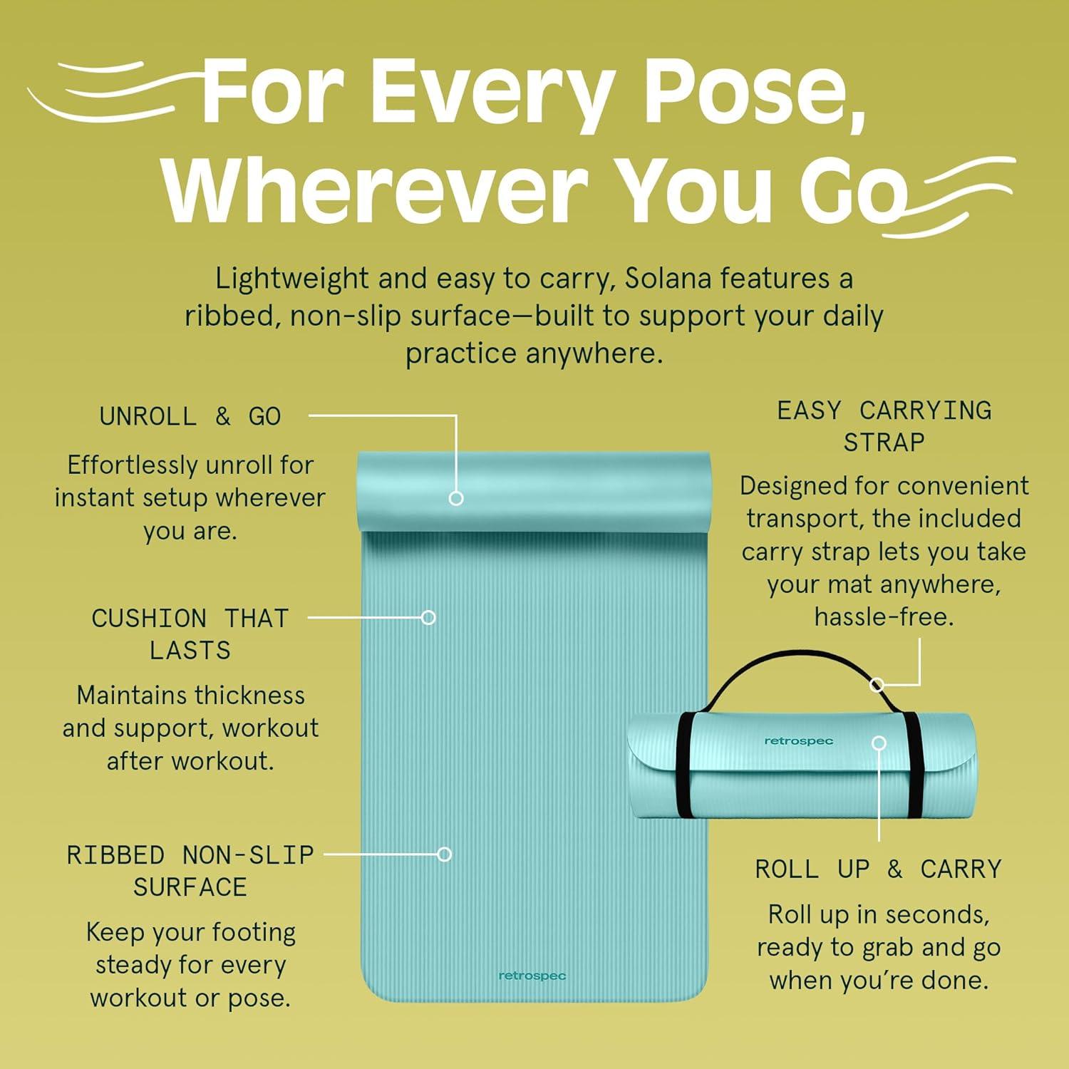 ​The Retrospec Solana Yoga Mat is designed for premium comfort, exceptional durability, and versatile fitness use. This extra thick yoga mat delivers a full 1/2 inch of cushioning support to reduce joint strain and enhance balance during yoga, pilates, or floor workouts. Its high-density TPE material creates a non-slip surface, so you can maintain stability even through the most challenging poses or high-intensity exercises. Whether you need a pilates mat, gym mat, or thick exercise mat for your home gym, the Solana offers dependable support for every workout routine. Perfect for beginners or advanced users, this thick yoga mat helps improve posture and focus throughout your session. Lightweight and easy to carry, your yoga mat with strap includes a durable nylon carrying strap for convenient transport and compact storage. Ideal for yoga, stretching, core training, and fitness routines, the Retrospec Solana makes the ultimate workout mat for women and men who value comfort, grip, and long-lasting performance.